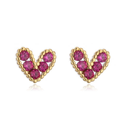 Fashion Copper 18k Gold Heart-shaped Zircon Stud Earrings