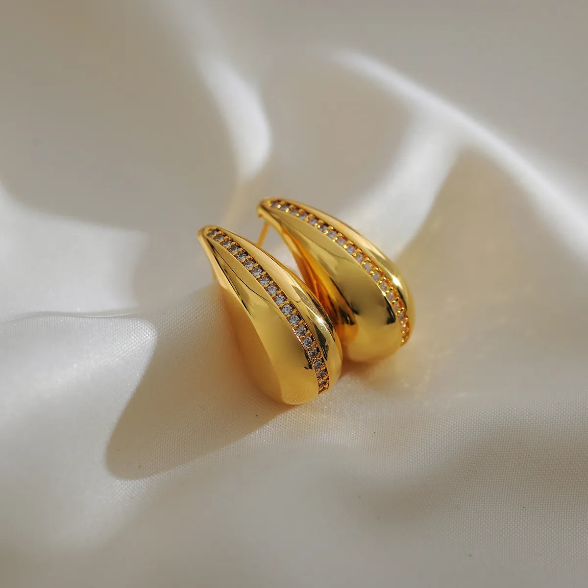 1 Pair Basic Modern Style Classic Style Water Droplets Inlay Copper Zircon 18K Gold Plated Ear Studs