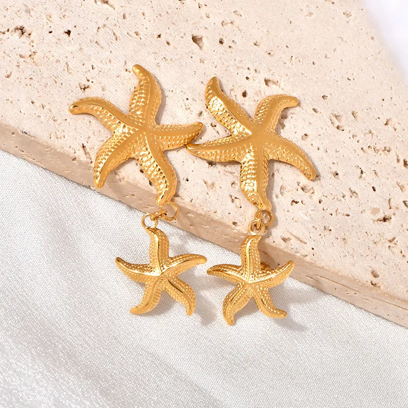 1 Pair Beach Starfish Shell Plating 304 Stainless Steel 18K Gold Plated Drop Earrings