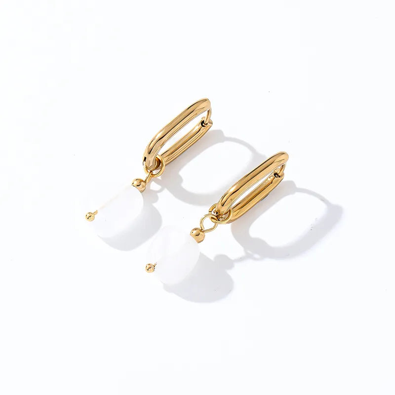 1 Pair Casual Retro French Style Oval Plating 304 Stainless Steel Natural Stone Gold Plated Drop Earrings