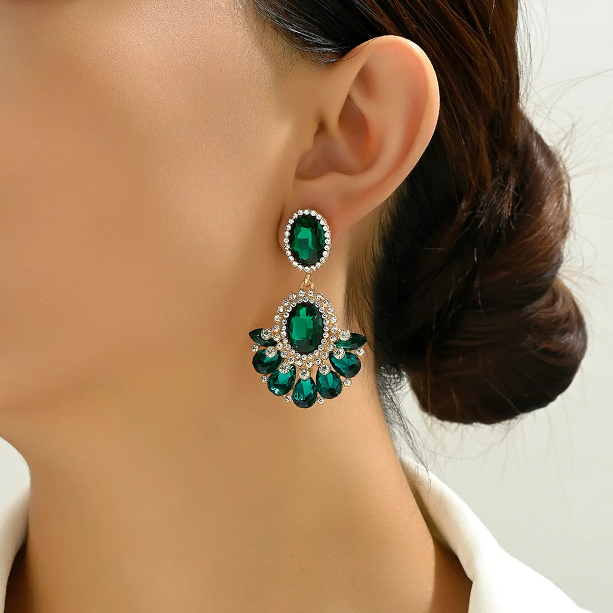 1 Pair Elegant Exaggerated Luxurious Geometric Plating Inlay Zinc Alloy Glass Dangling Earrings