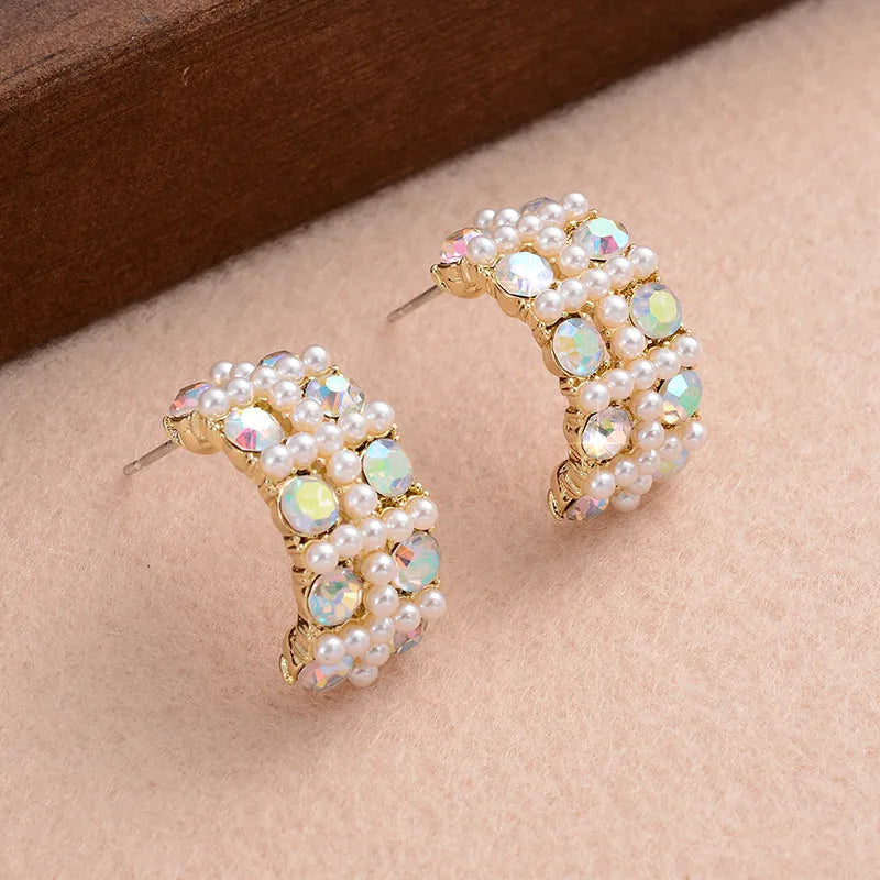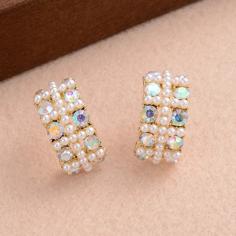 1 Pair Elegant Romantic Modern Style C Shape Plating Inlay Alloy Rhinestones Pearl 14k Gold Plated Ear Studs