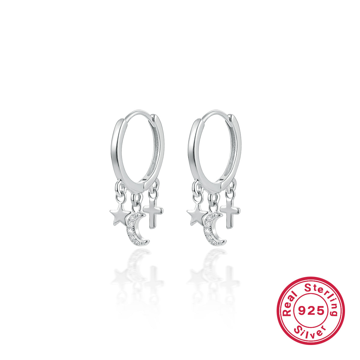 1 Pair Elegant Simple Style Commute Cross Star Moon Plating Inlay Sterling Silver Zircon 18k Gold Plated White Gold Plated Drop Earrings