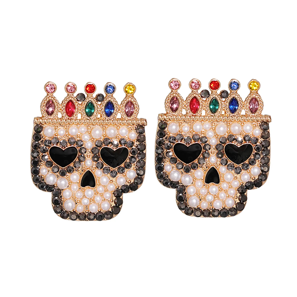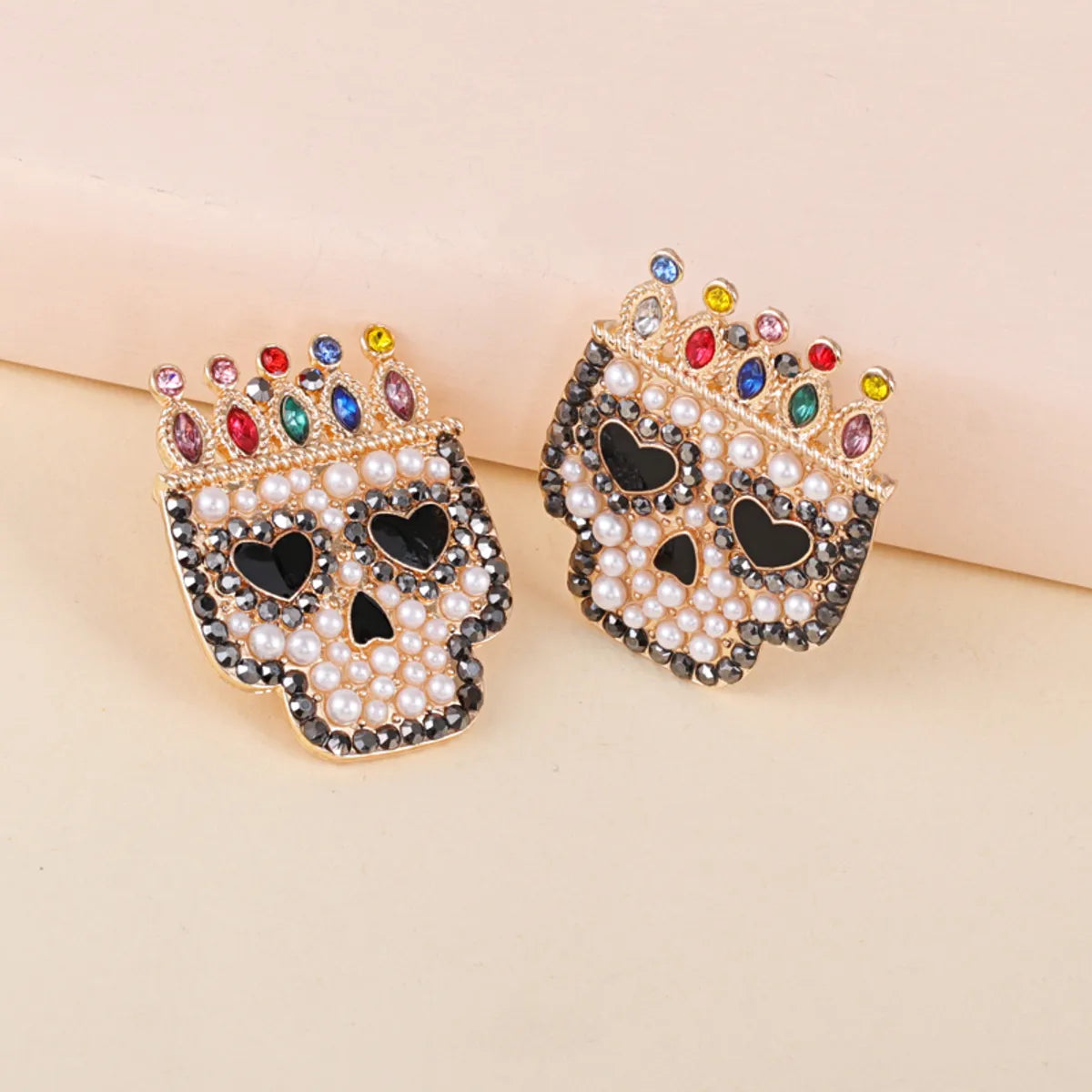 1 Pair Fashion Skull Alloy Inlay Artificial Pearls Rhinestones Women's Ear Studs