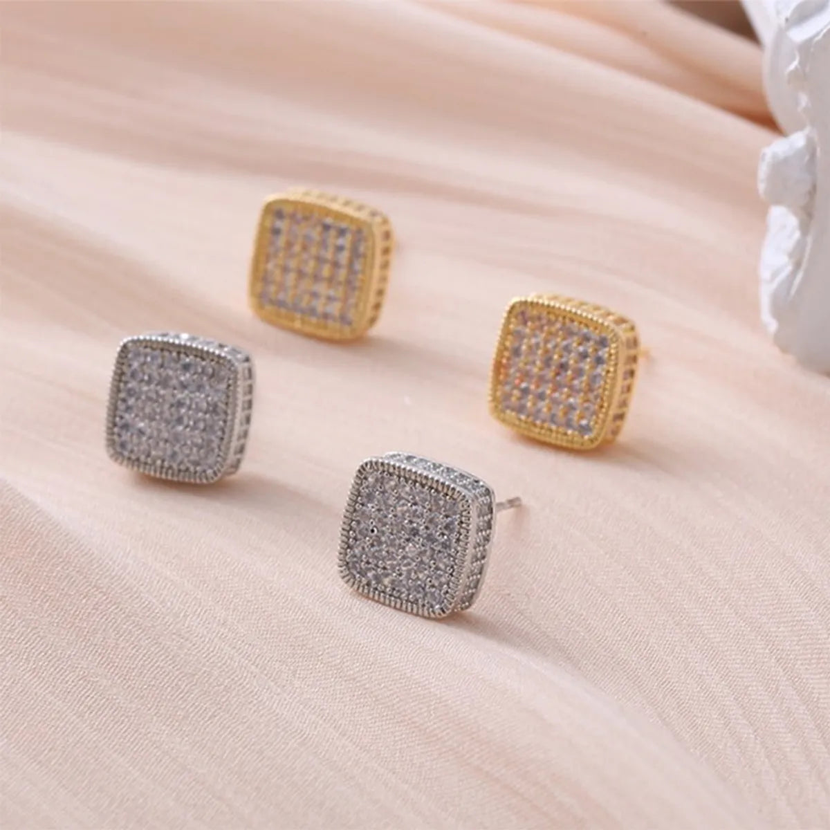 1 Pair Hip-hop Simple Style Shiny Round Square Plating Inlay Copper Zircon Gold Plated Ear Studs
