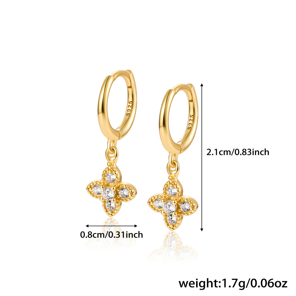 1 Pair Lady Cross Plating Inlay Sterling Silver Zircon 18k Gold Plated White Gold Plated Earrings