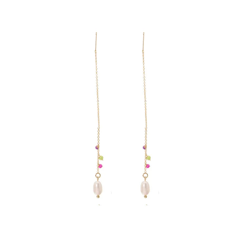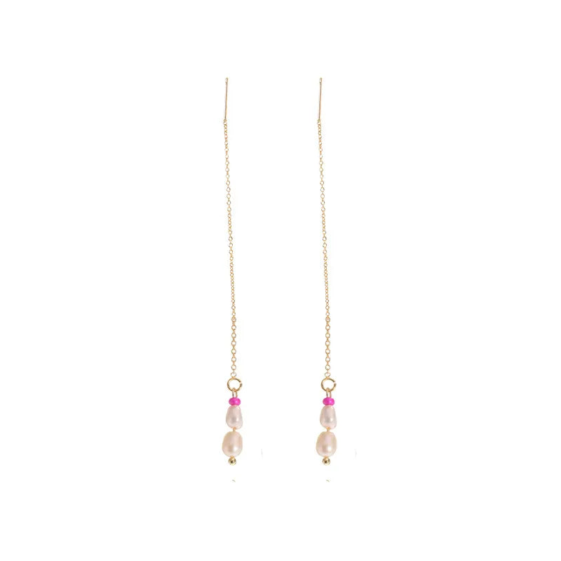 1 Pair Original Design Solid Color Plating Freshwater Pearl 18k Gold Plated Drop Earrings