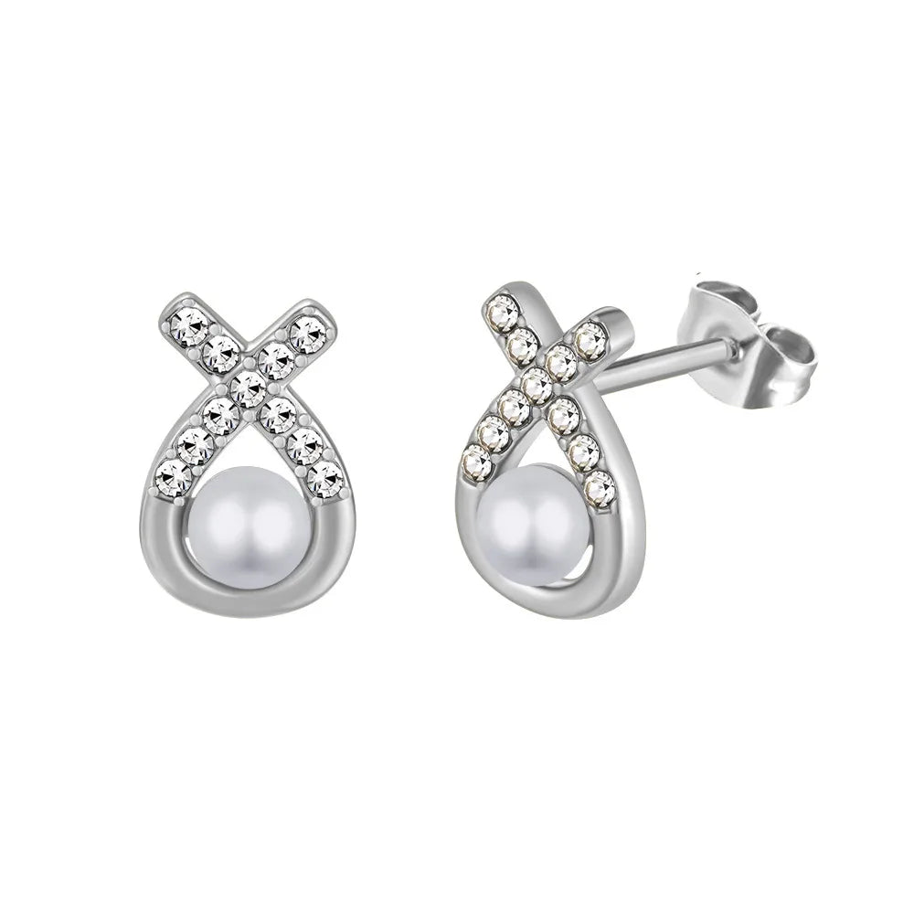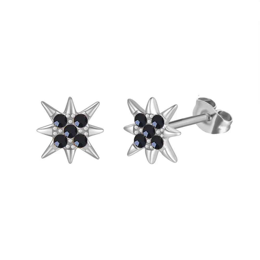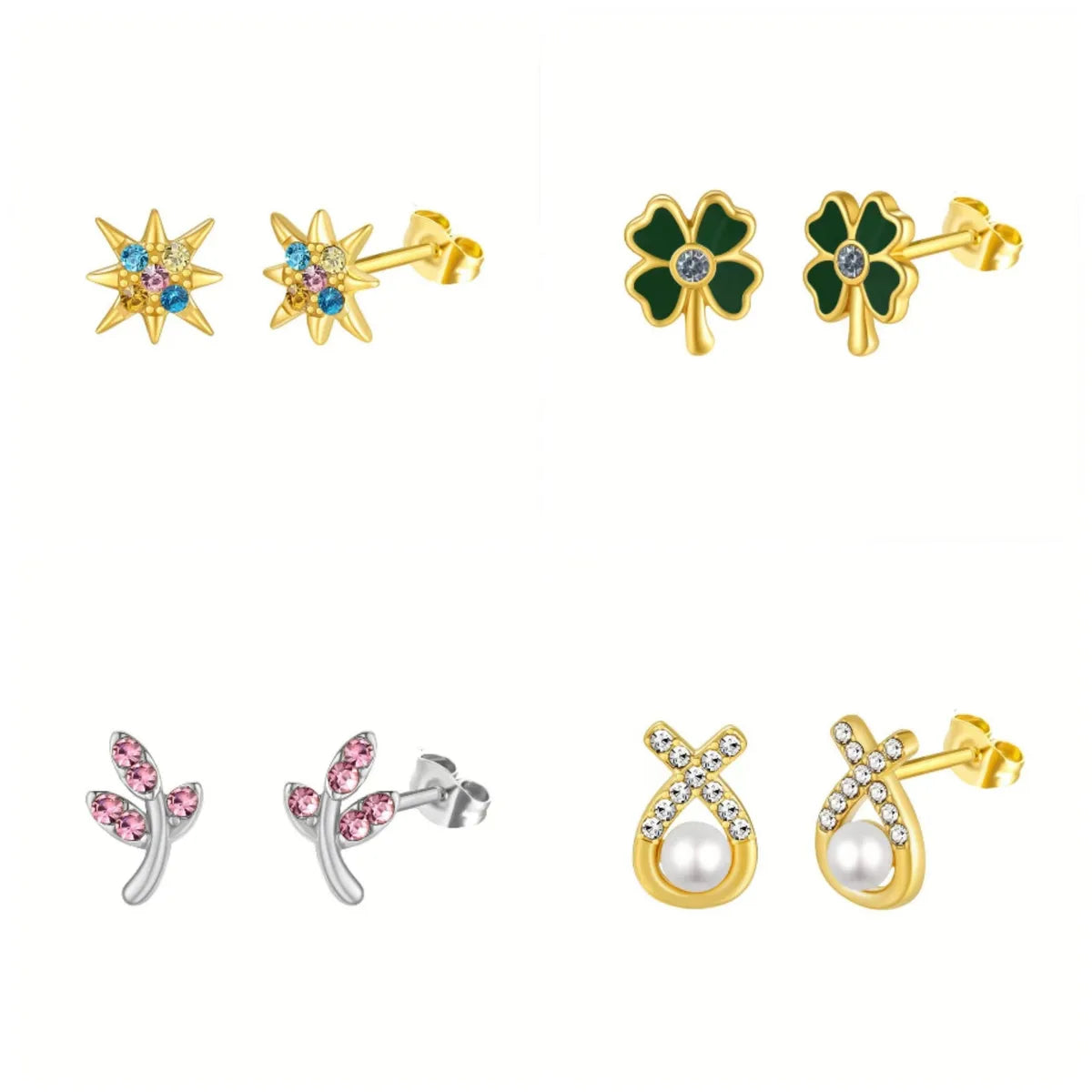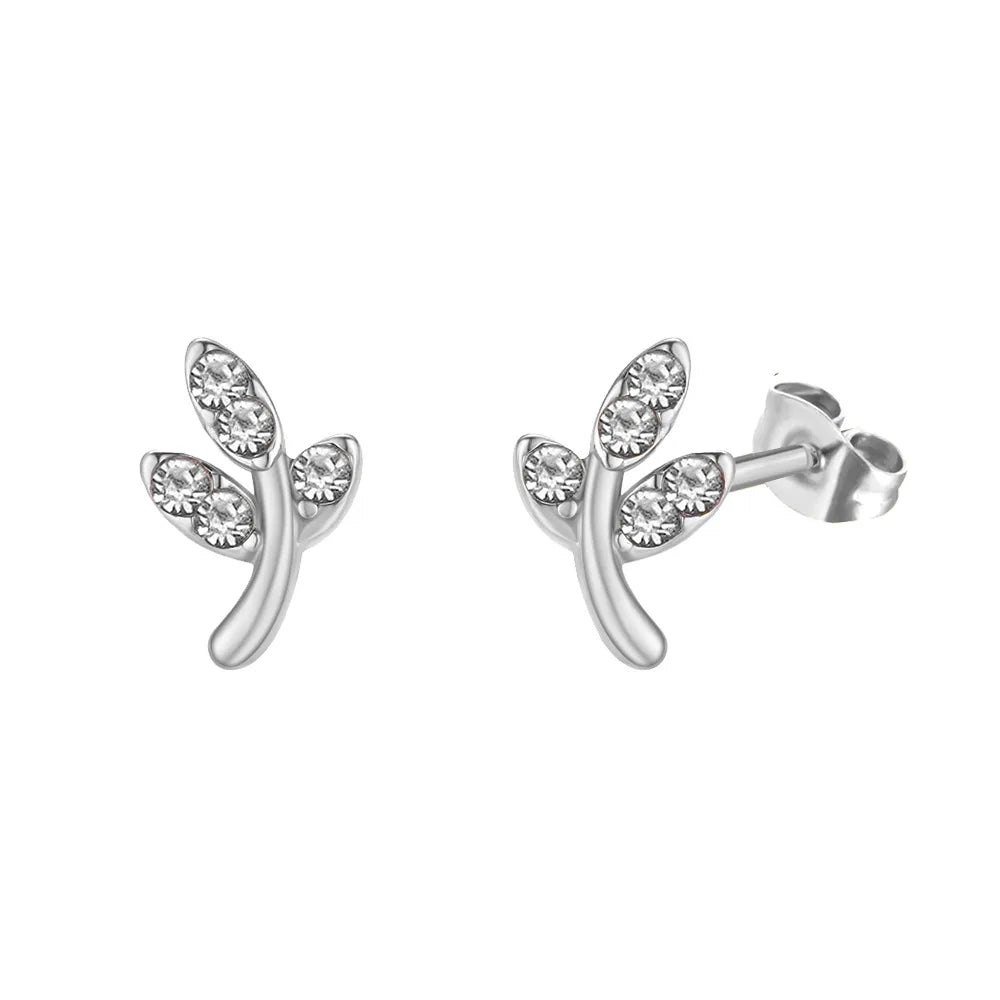 1 Pair Pastoral Leaf Inlay Titanium Steel Zircon Ear Studs