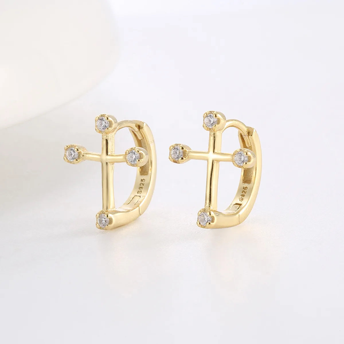 1 Pair Simple Style Commute Geometric Cross Plating Inlay Sterling Silver Zircon Earrings