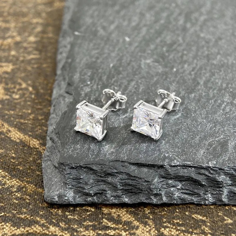 1 Pair Simple Style Geometric Inlay Sterling Silver Zircon Silver Plated Ear Studs