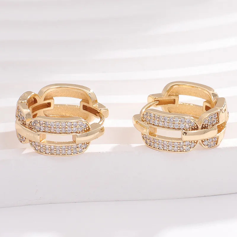 1 Pair Simple Style Geometric Plating Hollow Out Inlay Copper Zircon K Gold Plated Rhodium Plated Earrings