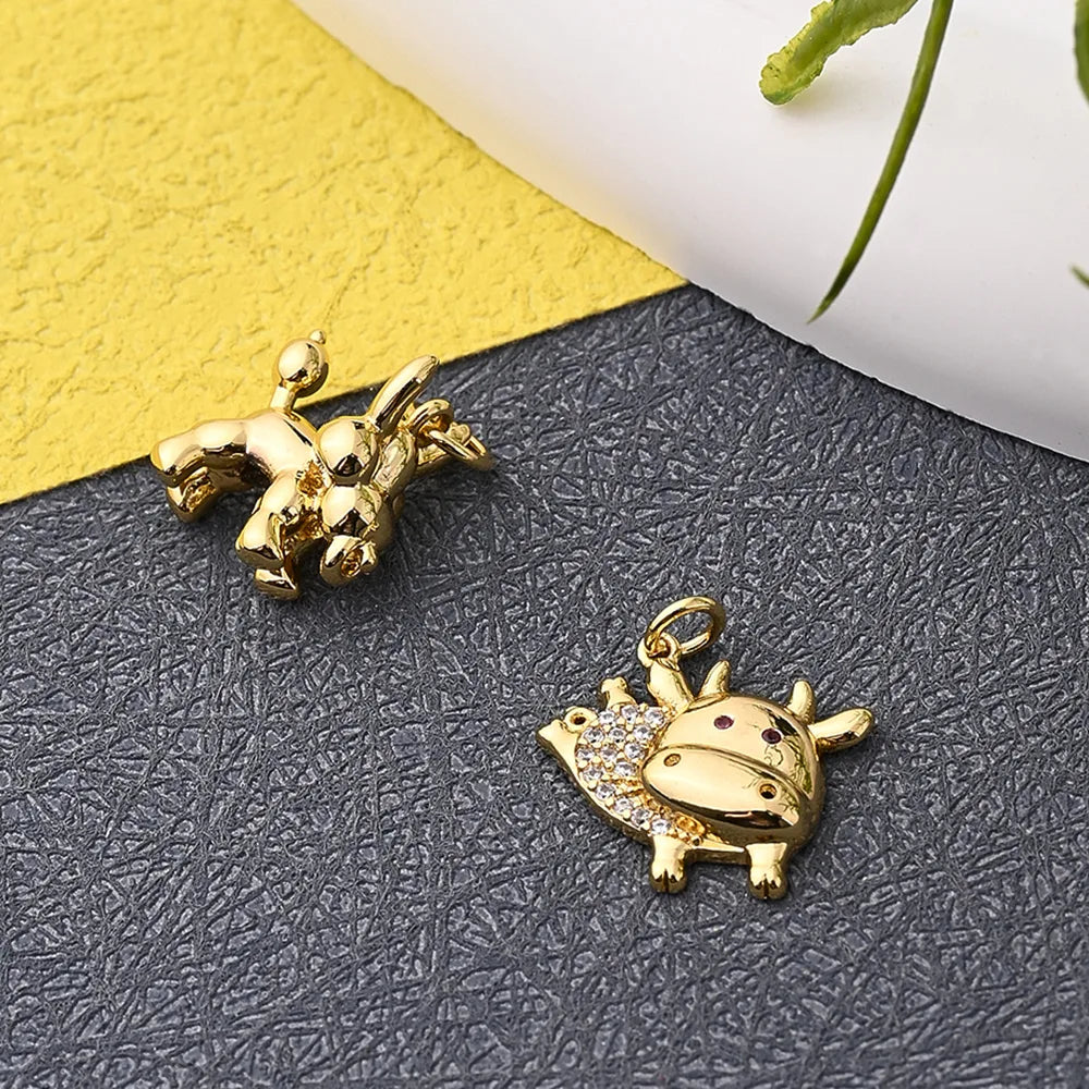 1 Pc/Package 15.5x15mm 15x13mm Hole 2~2.9mm Hole 3~3.9mm Copper Zircon 18K Gold Plated Halloween Pattern Cattle Polished Pendant