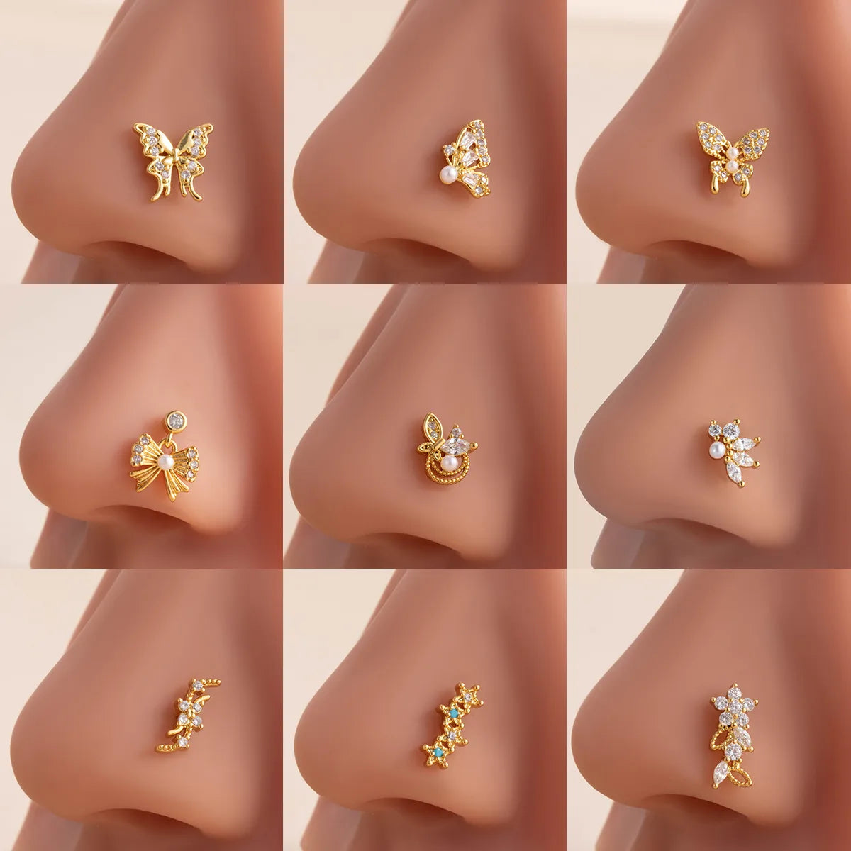 1 Piece Nose Rings & Studs Casual Simple Style Classic Style Flower Butterfly Bow Knot 316L Stainless Steel Copper Inlay Zircon Nose Rings & Studs