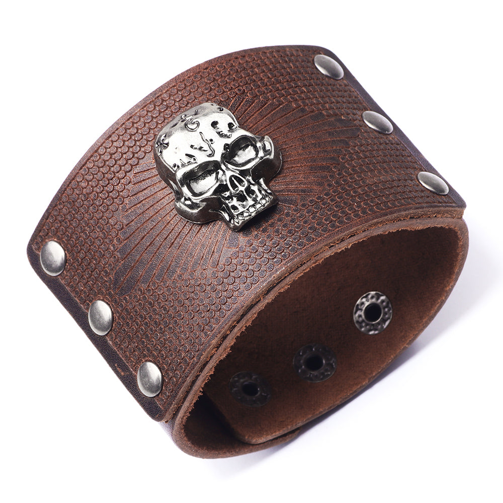 1 Piece Vintage Style Skull Leather Men's Bangle