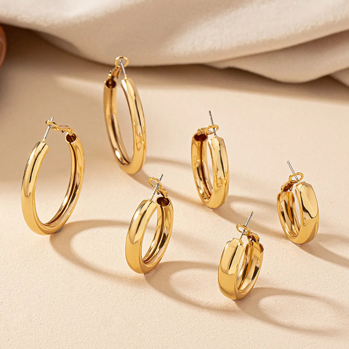 3 Pairs Simple Style Geometric Round Plating Alloy Hoop Earrings