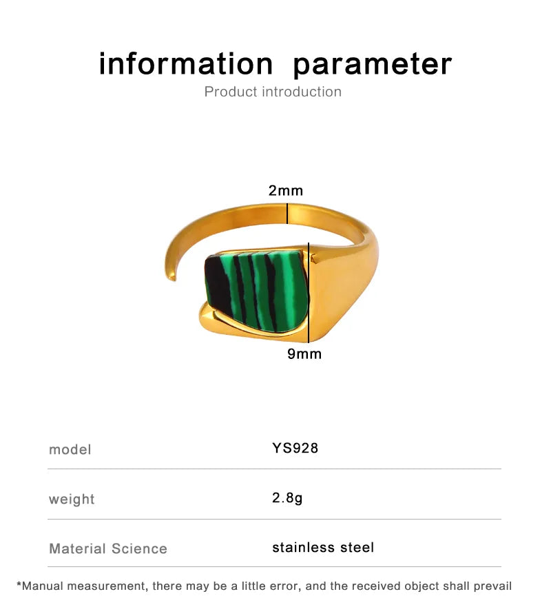 304 Stainless Steel 18K Gold Plated Elegant Lady Classic Style Inlay Geometric Malachite Open Rings