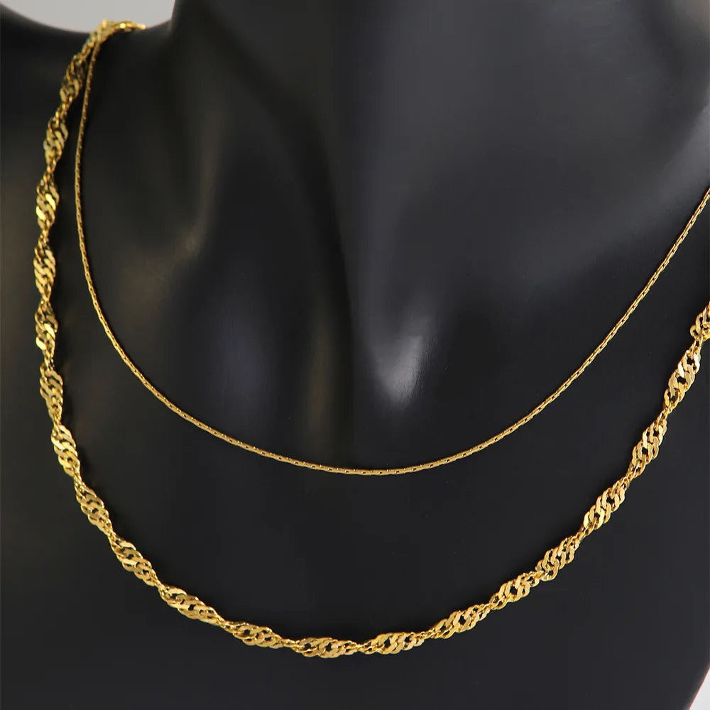 304 Stainless Steel 18K Gold Plated Retro Punk Cool Style Plating Solid Color Double Layer Necklaces