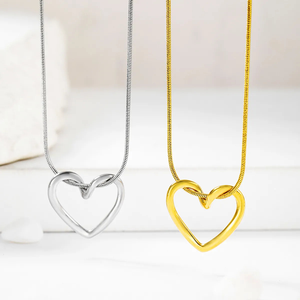 304 Stainless Steel Simple Style Shiny Polishing Plating Heart Shape Pendant Necklace