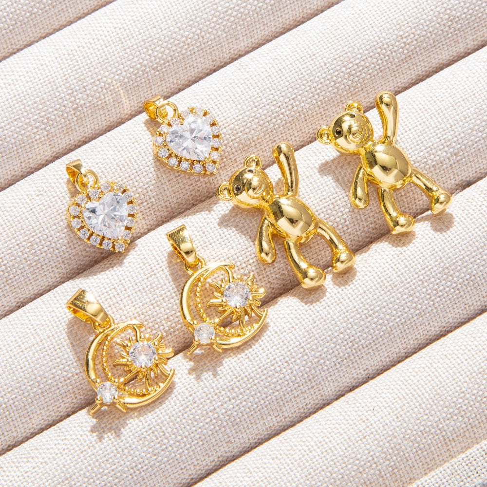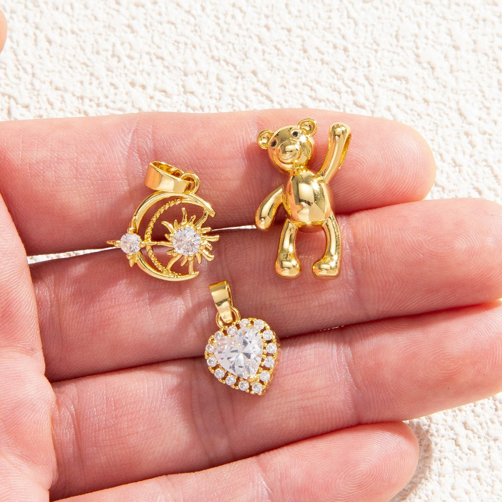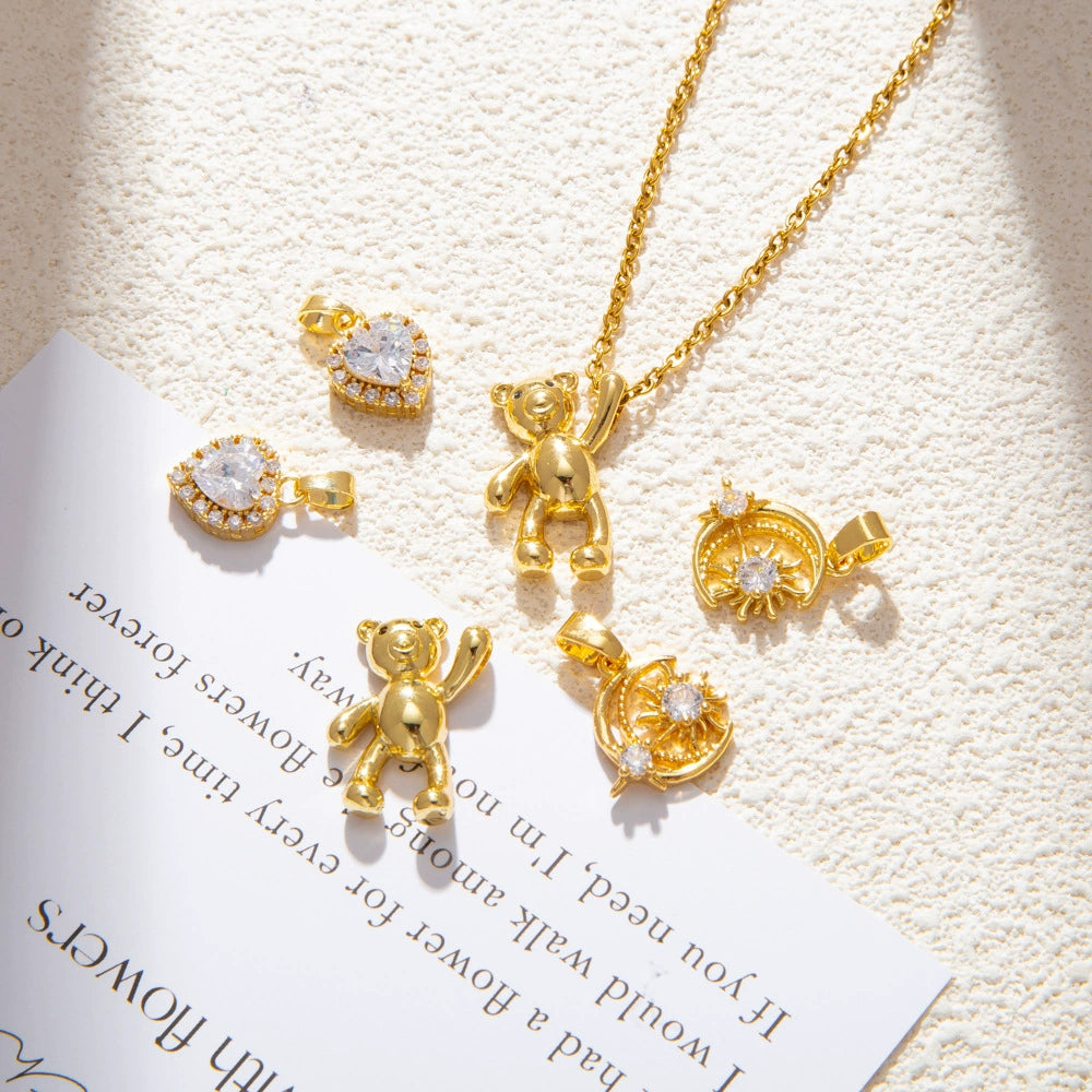 Accessories Stainless Steel Copper Inlaid Zirconium Bear Heart Diamond Moon Pendant With O Shaped Chain Electroplated Design