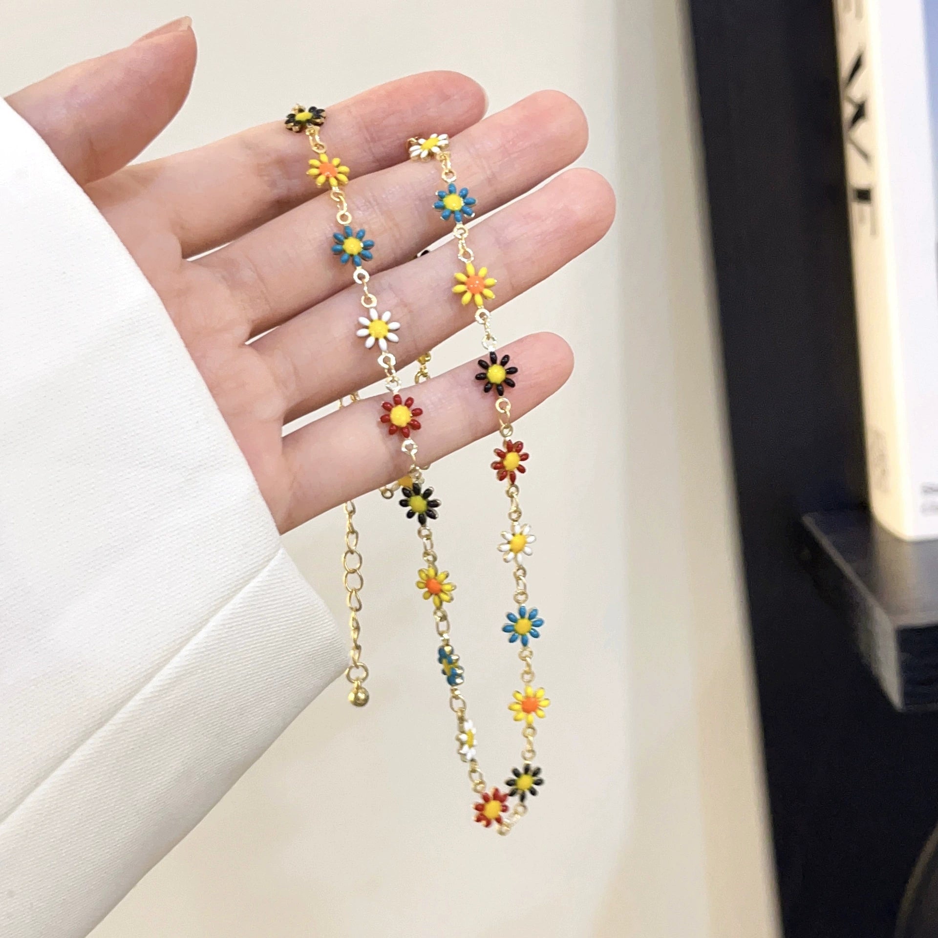 Alloy Flower Daisy Beaded Clavicle Chain Necklace For Women Electroplated