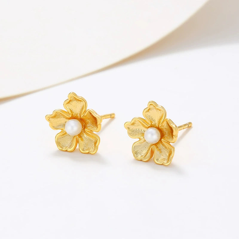 Alloy Gold Plated Imitation Pearl Flower Earrings For Women French Retro Style