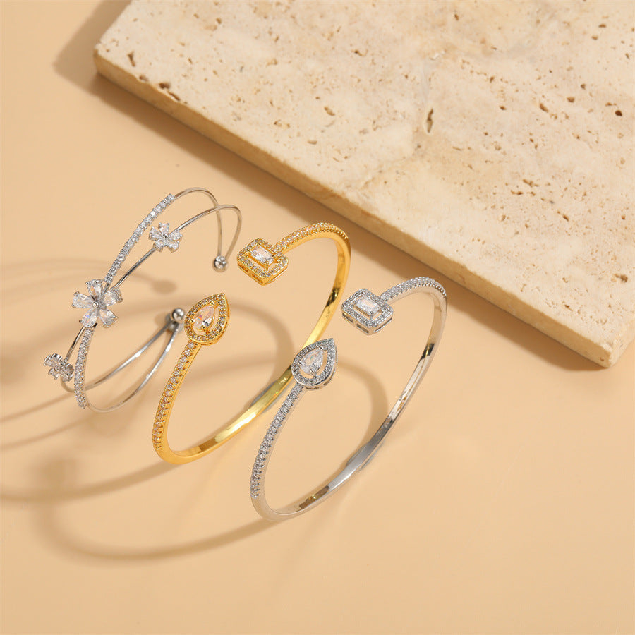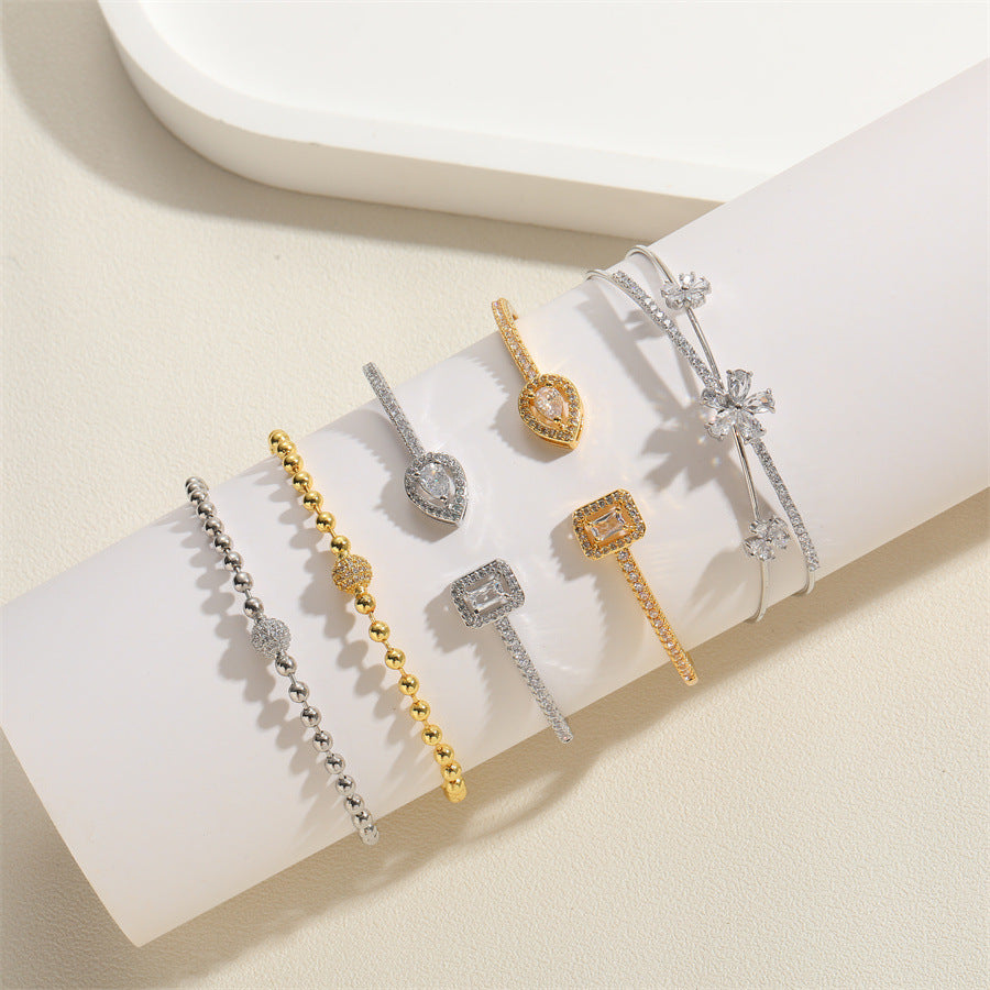 [Product Name] Cross-border hot-selling geometric flower square water drop copper bead zircon open bracelet