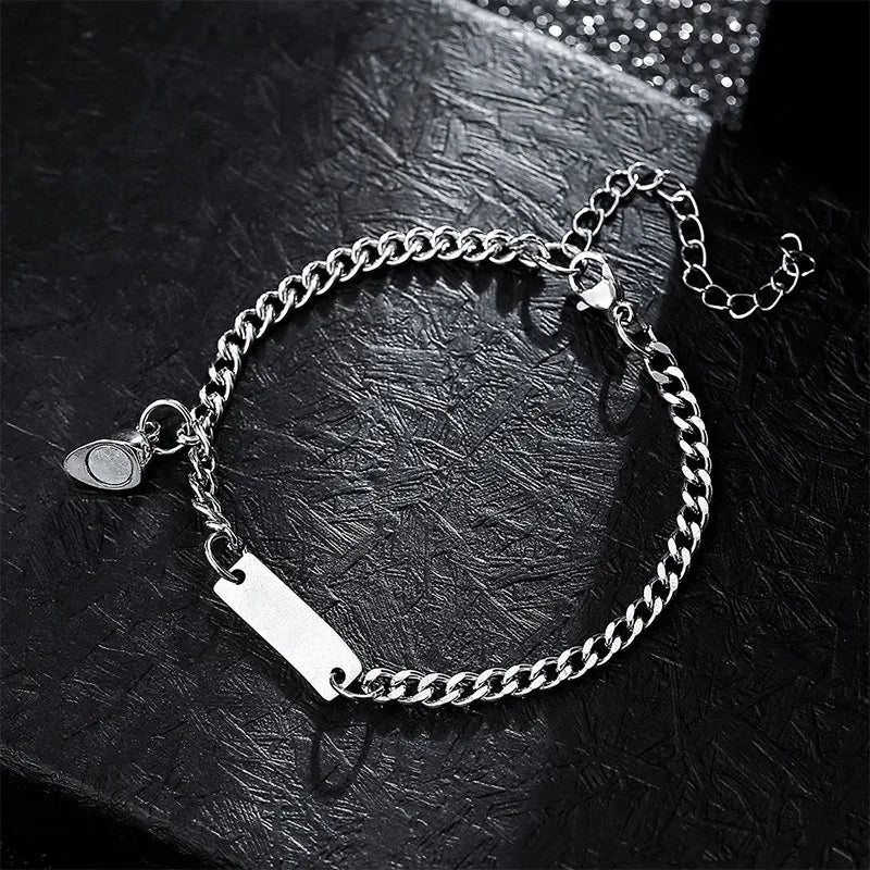 Basic Customization Laser Engraving Titanium Steel Cuban Link Chain Curb Chain Bracelets In Bulk