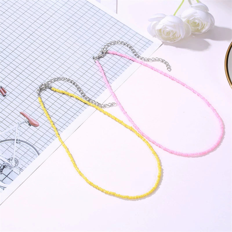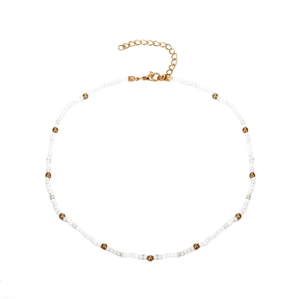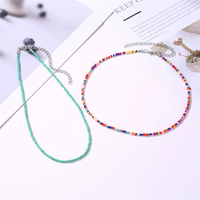 Beaded Necklace Geometric Style Bohemian With Zircon And Cross Chain