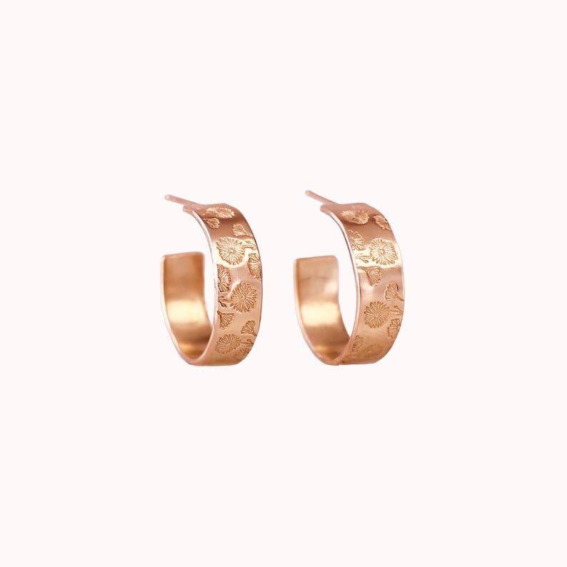 Want to mix and match flowers? Not a problem, simply let us know in the Personalization Box which flowers you'd like on each hoop. We can fit up to 6 flower designs per hoop. They will be stamped organically along the hoop to create a perfect bouquet