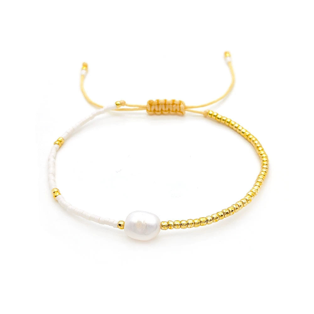 Bracelet Freshwater Pearl Metal Geometric Handmade Hand Woven For Women