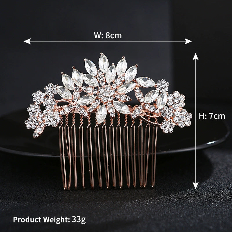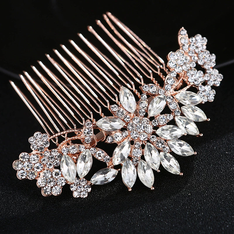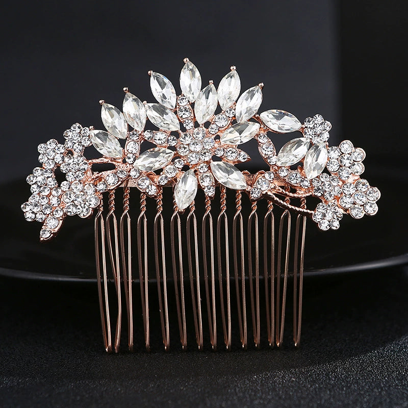 Bridal Jewelry Alloy Flower Hair Comb With Electroplating Treatment
