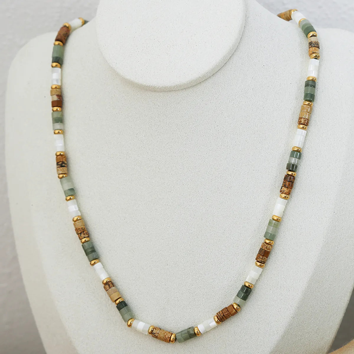 Casual Vacation Color Block Natural Stone Titanium Steel 18k Gold Plated Necklace In Bulk