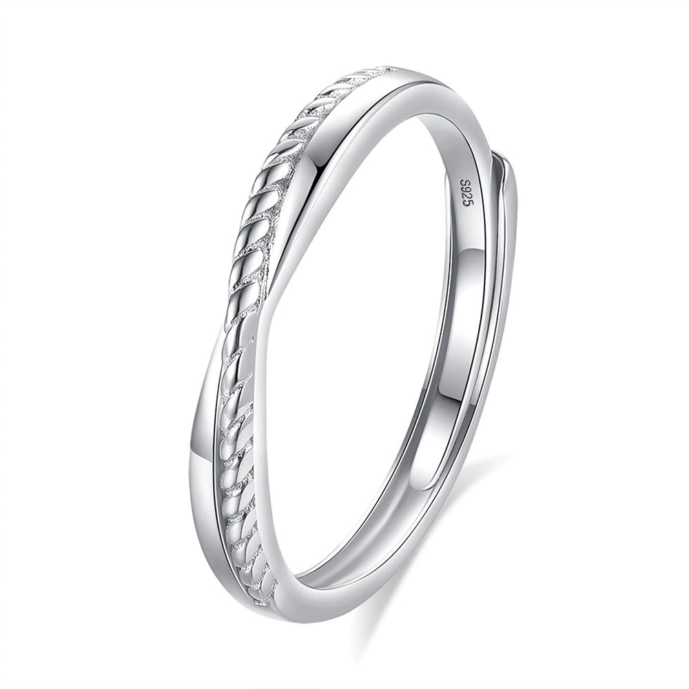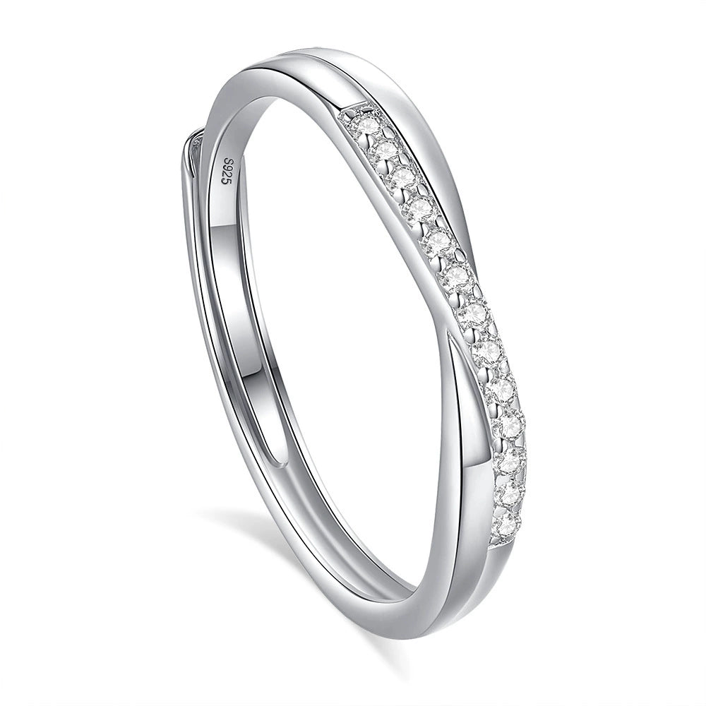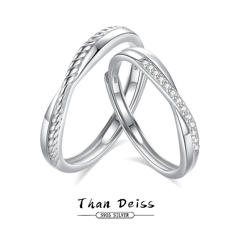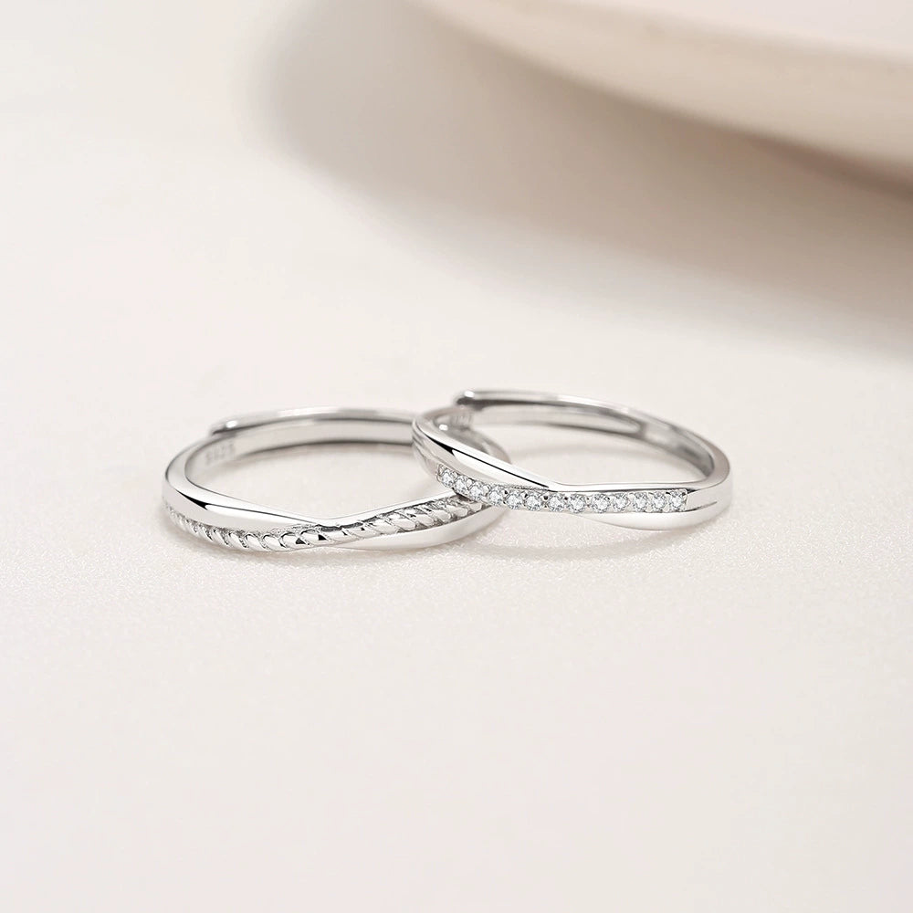 Couple Ring 925 Silver Mobius Twist Geometric Diamond Design