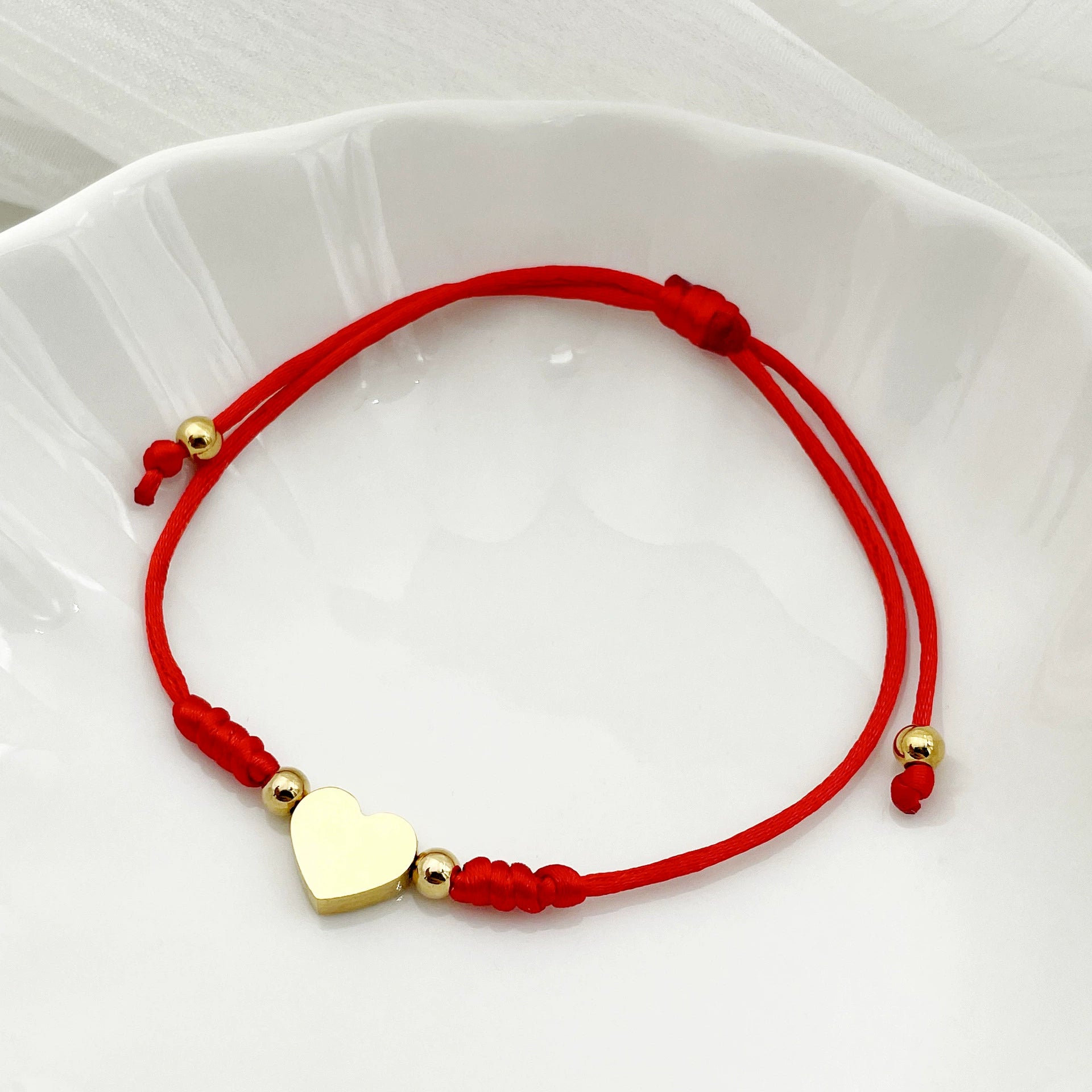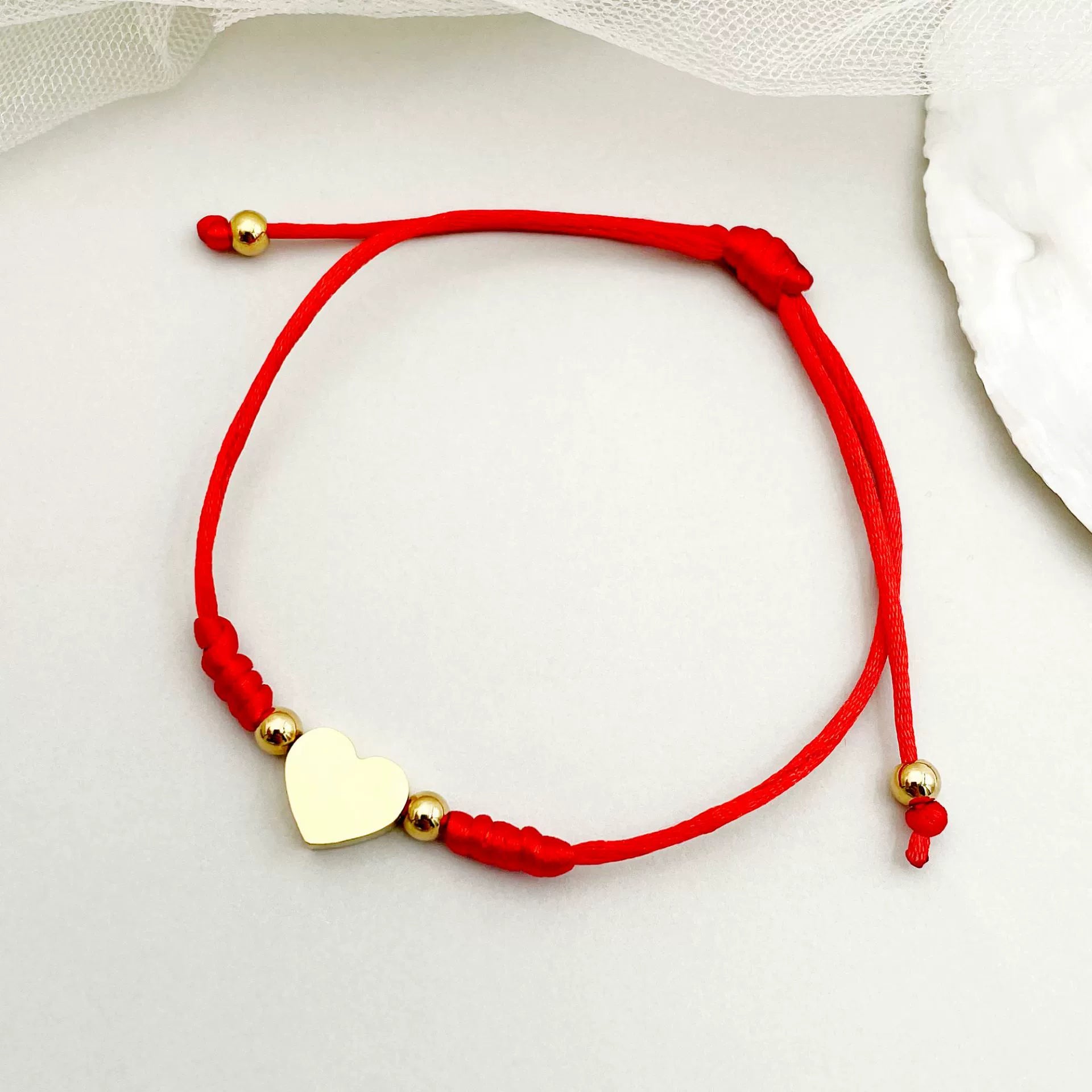 Couple Woven Red Rope Stainless Steel Heart Shape Love Bracelet Electroplated