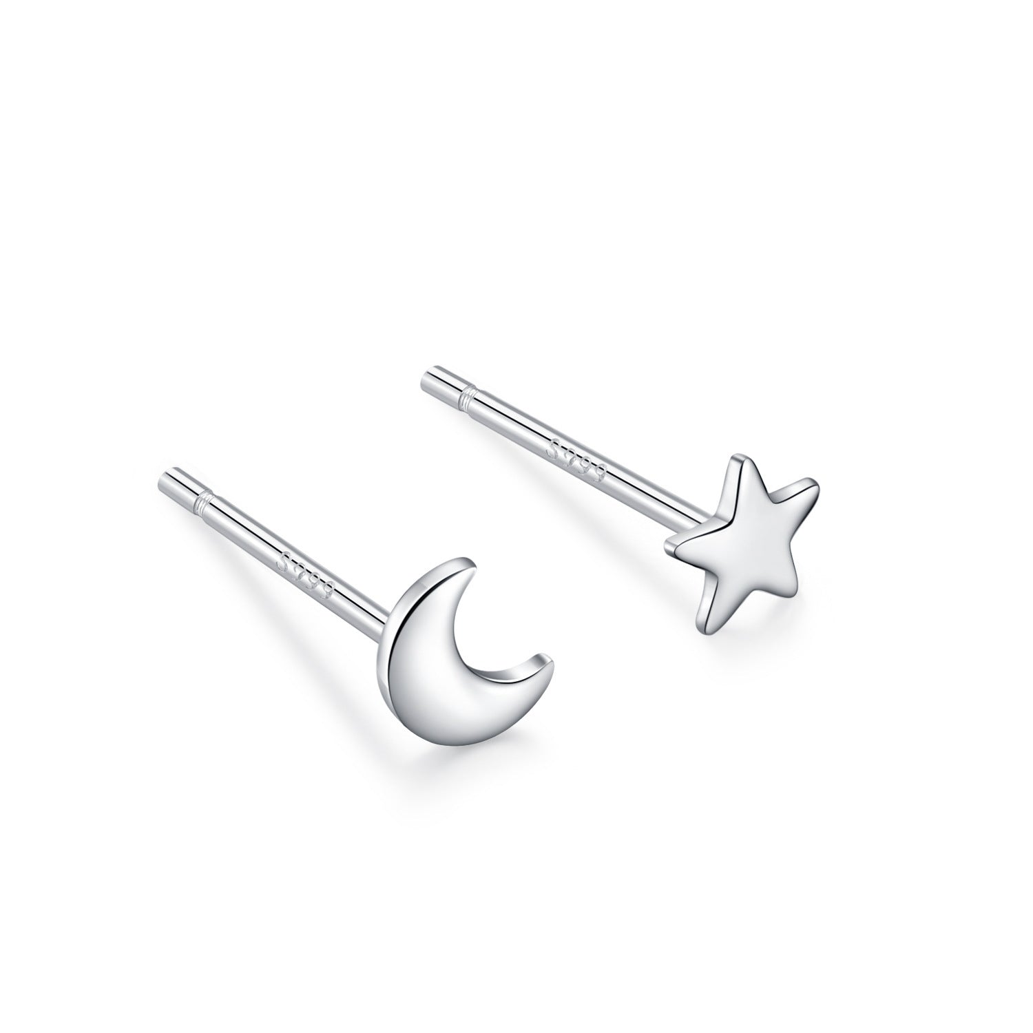 Cute Star Heart Shape Sterling Silver Plating Ear Studs 1 Pair