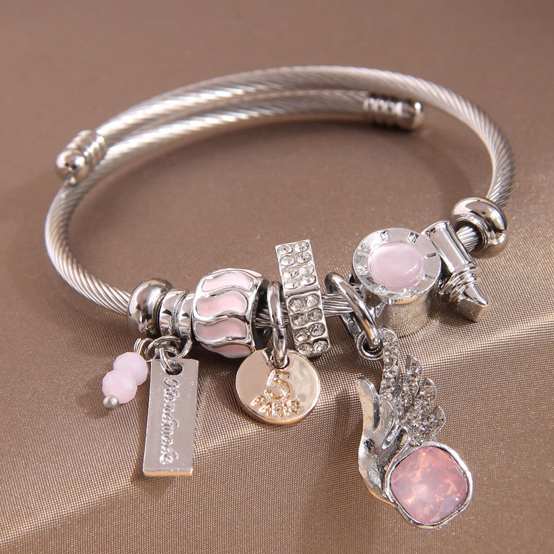 Elegant Simple Style Geometric Wings Stainless Steel Alloy Plating Inlay Rhinestones Bangle