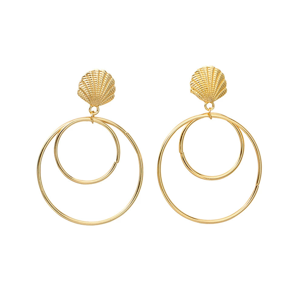 Exaggerated Shell Double Ring Metal Electroplated Women's Earrings