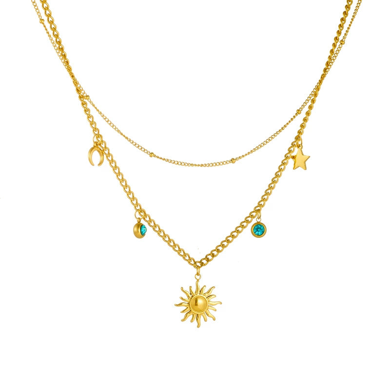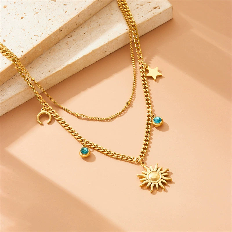 Fashion Dopamine Women's Stainless Steel Star Moon Clavicle Chain With Flower Pendant And Electroplating Treatment