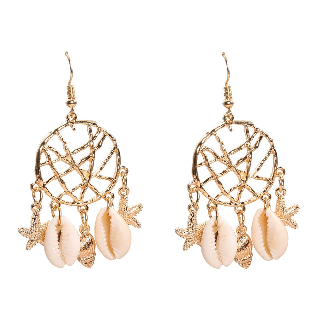 Fashion Shell Conch Sea Star Dream Catcher Earrings For Women Alloy Material With Electroplating Inlaid With Artificial And Semi Precious Stones