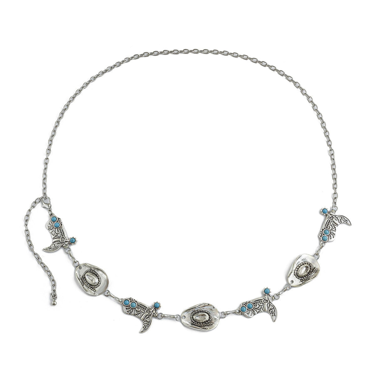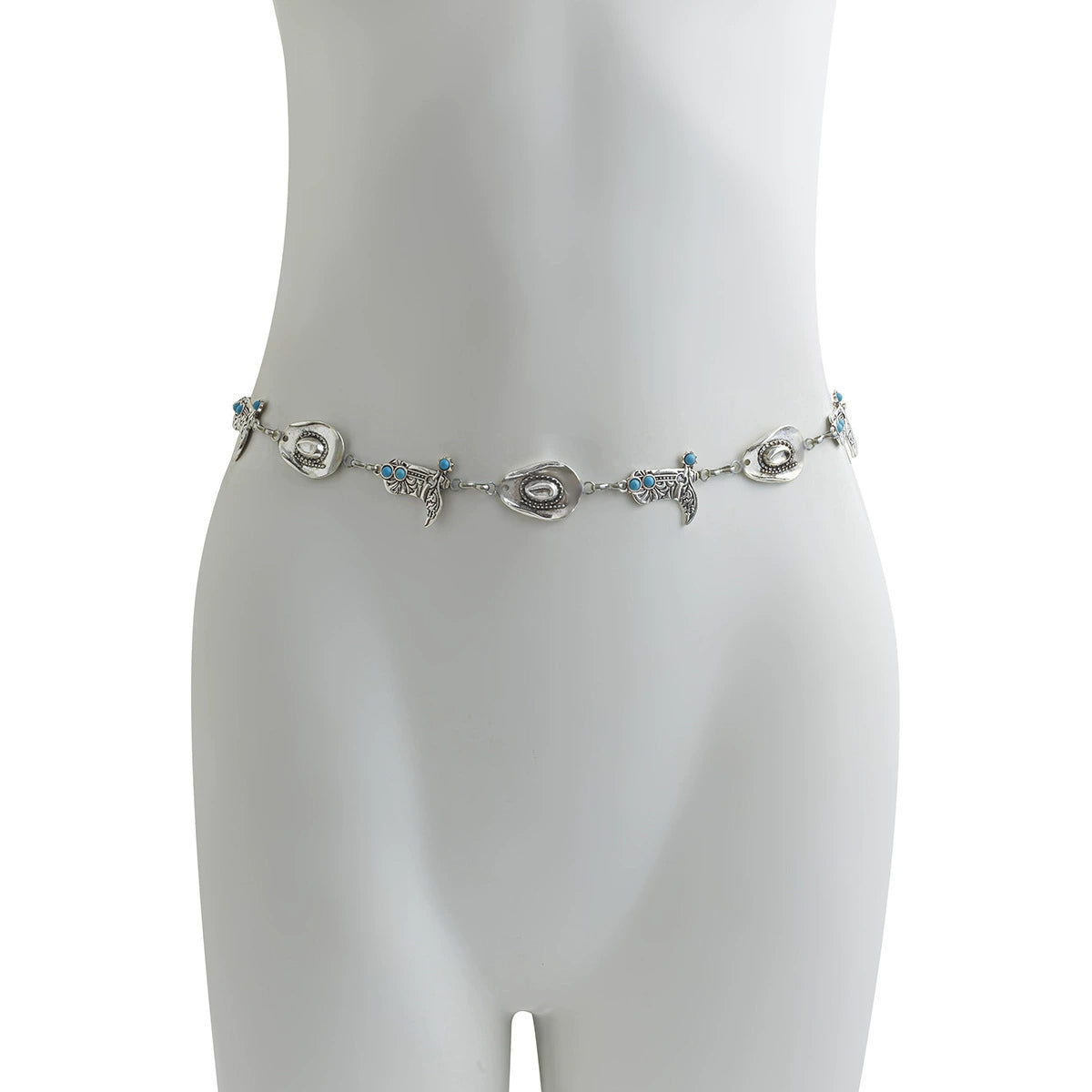 Female Punk Vintage Metal Body Chain And Waist Chain With Cowboy Hat And Turquoise Boots Style
