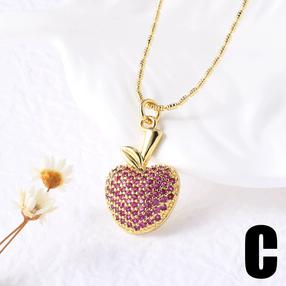 Fruit Strawberry Cherry Pendant Necklace Copper Electroplated For Women