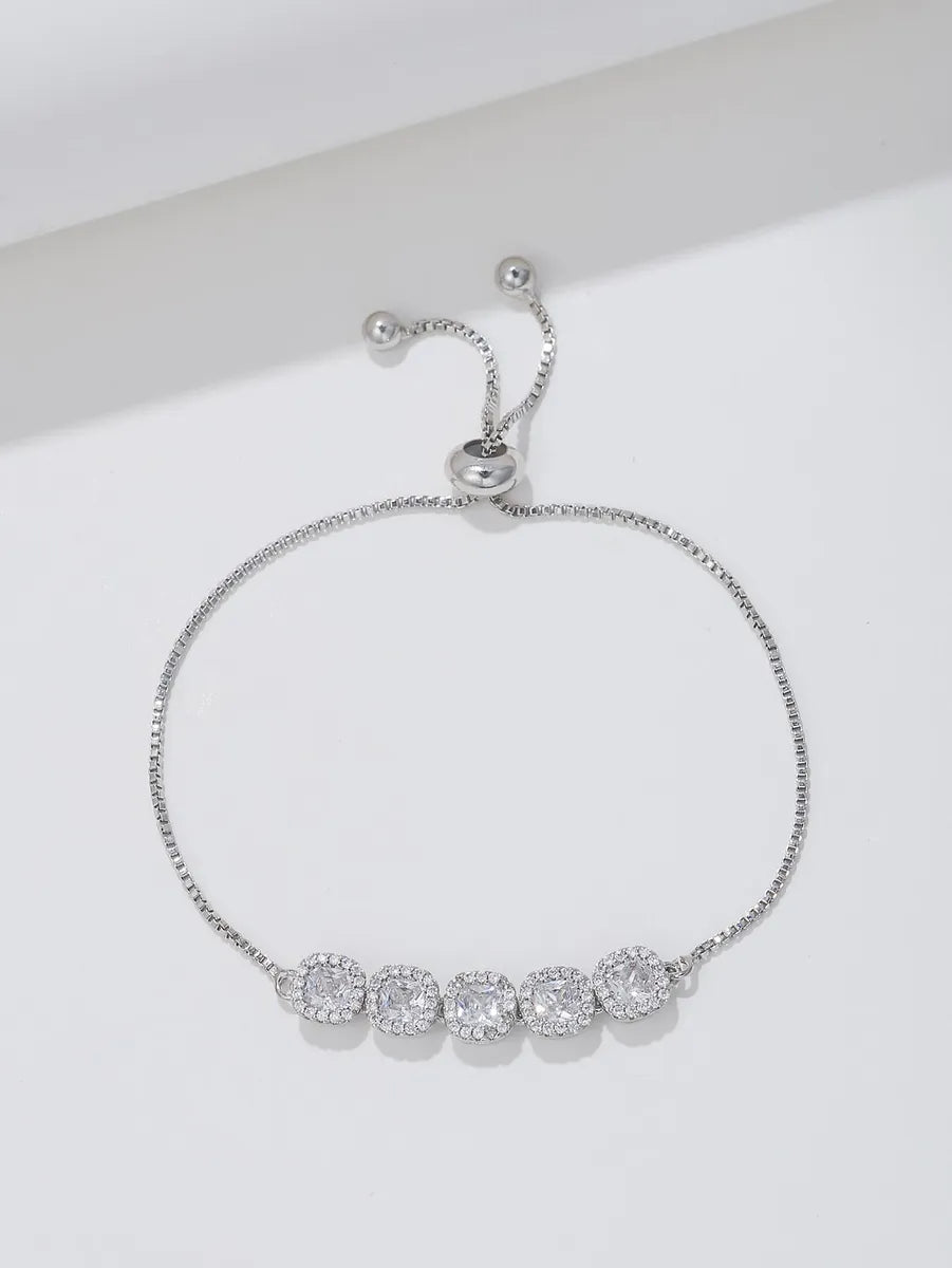 Glam Round Stainless Steel Copper 18k Gold Plated Rose Gold Plated Silver Plated Zircon Bracelets In Bulk