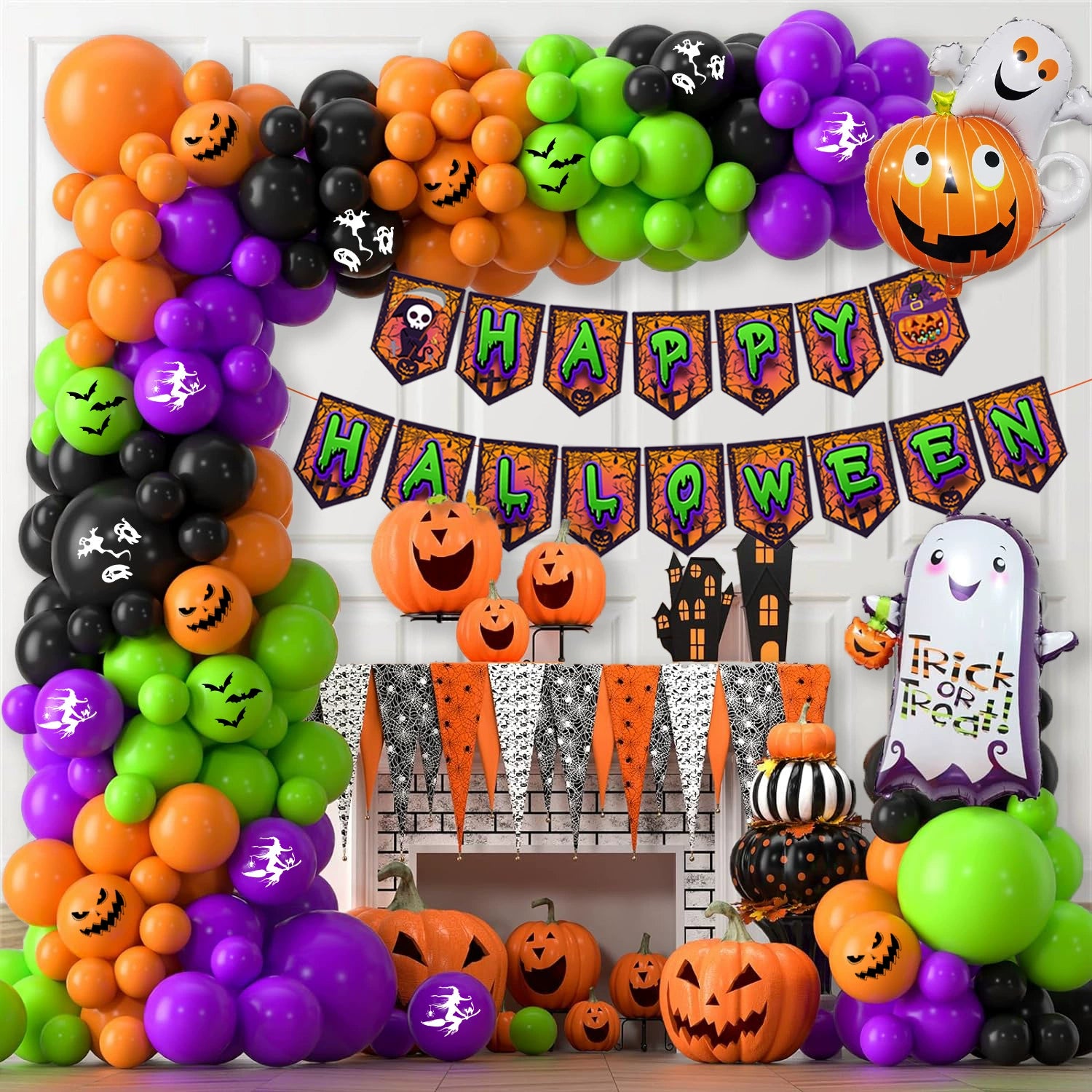 Halloween Theme Aluminum Film And Latex Balloons With Ghost Witch Bat Spider Design In Round Shape