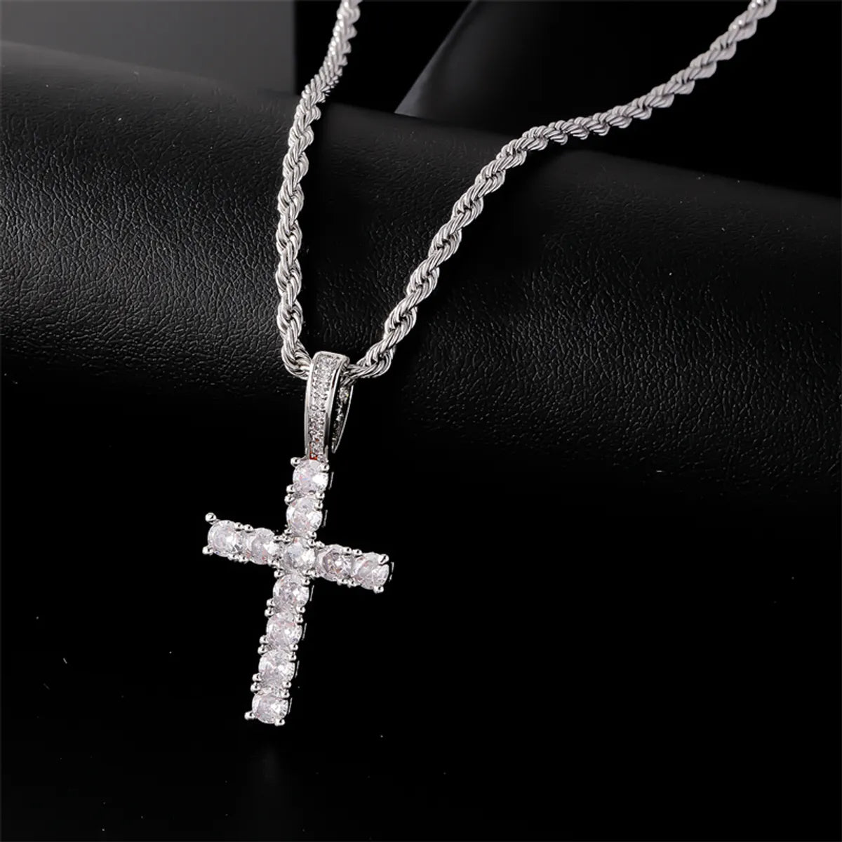 Hip-Hop Cross 304 Stainless Steel Copper Plating Inlay Zircon K Gold Plated Rhodium Plated Women'S Pendant Necklace