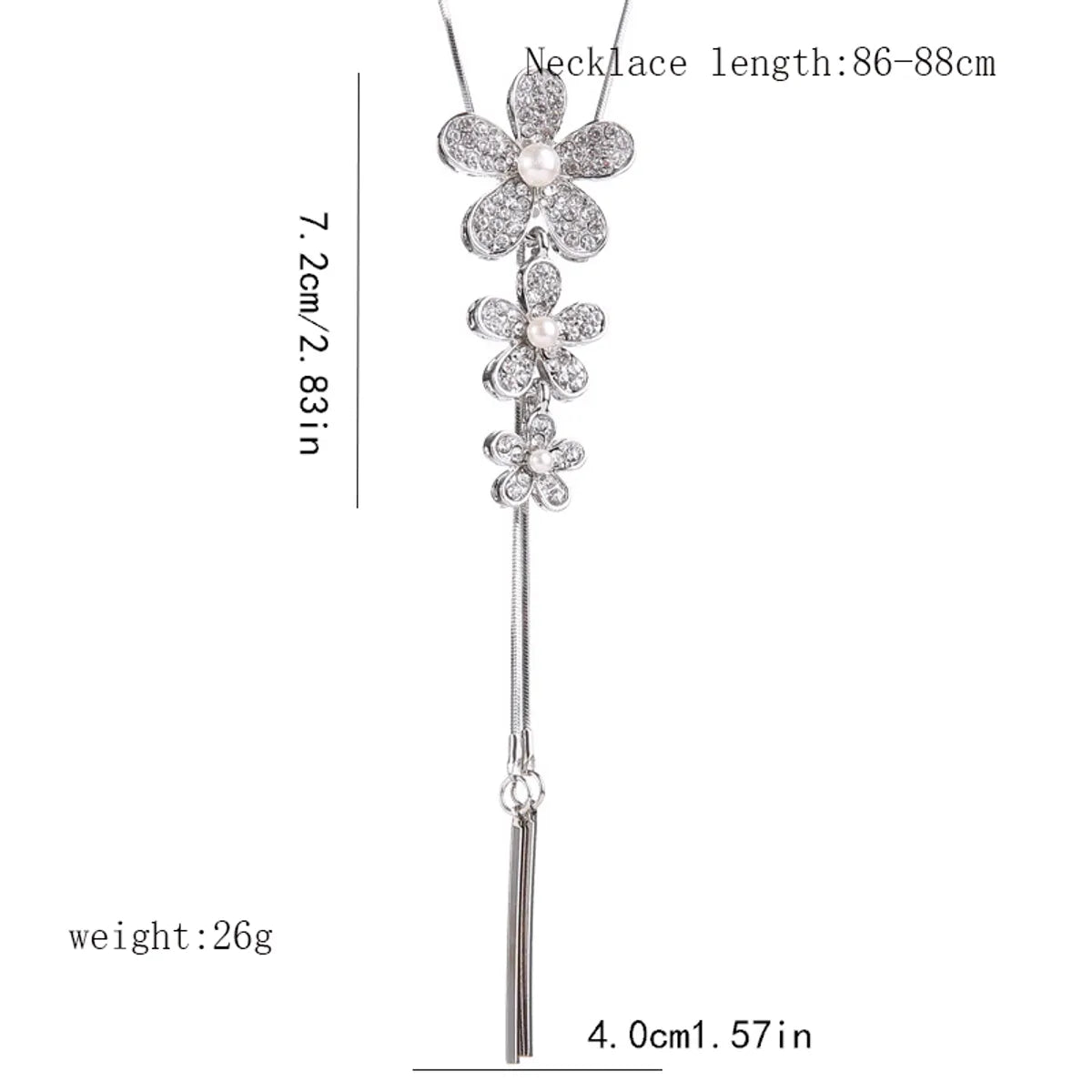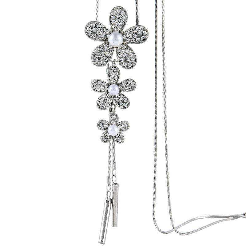 Ig Style Shiny Flower Alloy Copper Plating Inlay Artificial Pearls Rhinestones Sweater Chain Long Necklace