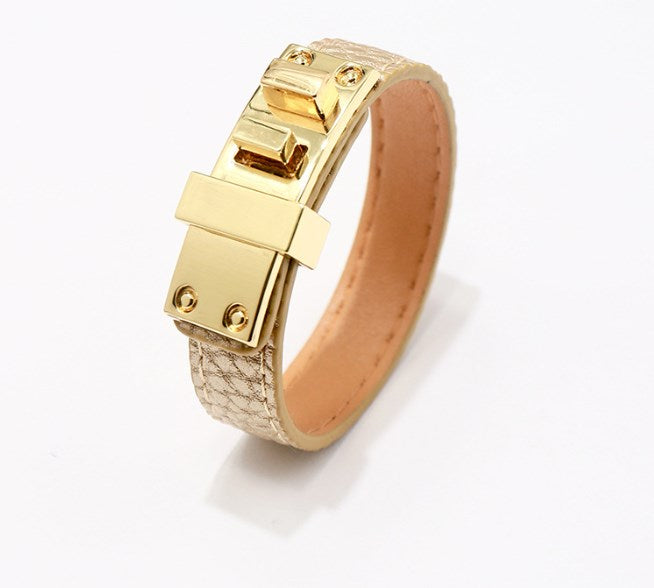 Ig Style Solid Color Pu Leather Alloy Plating Unisex Bangle