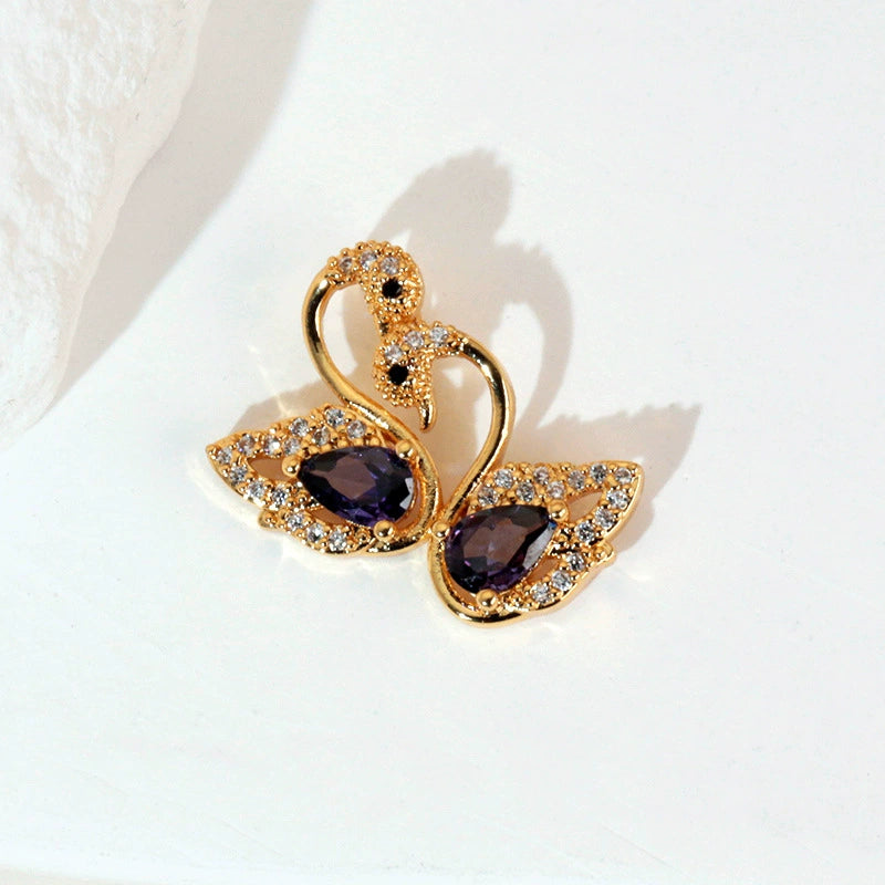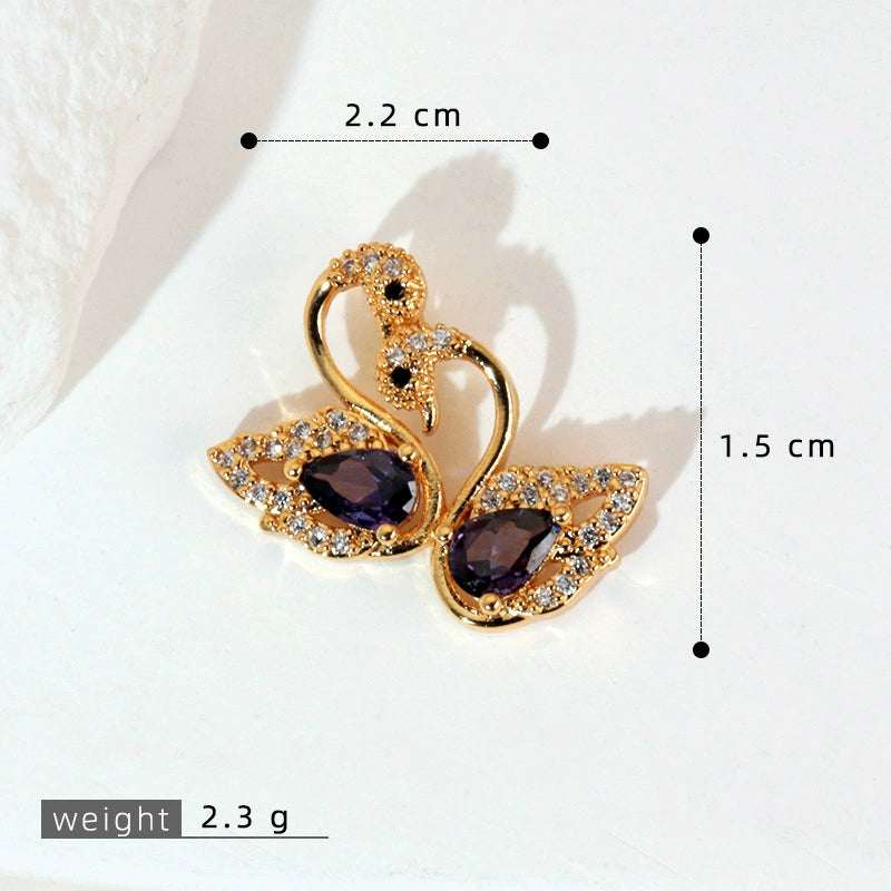 Jewelry Copper Animal Zodiac Fashion Electroplated Black Pink Swan Pendant Clavicle Chain Necklace Single Diamond Earrings