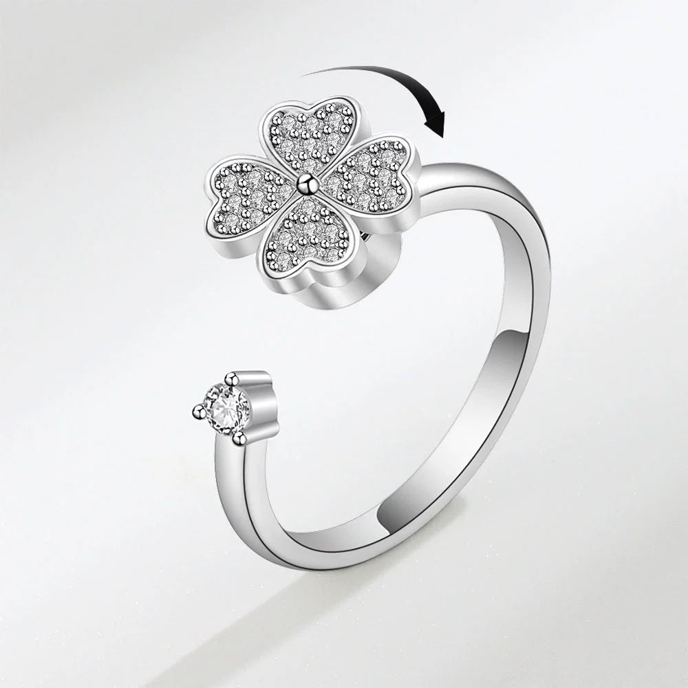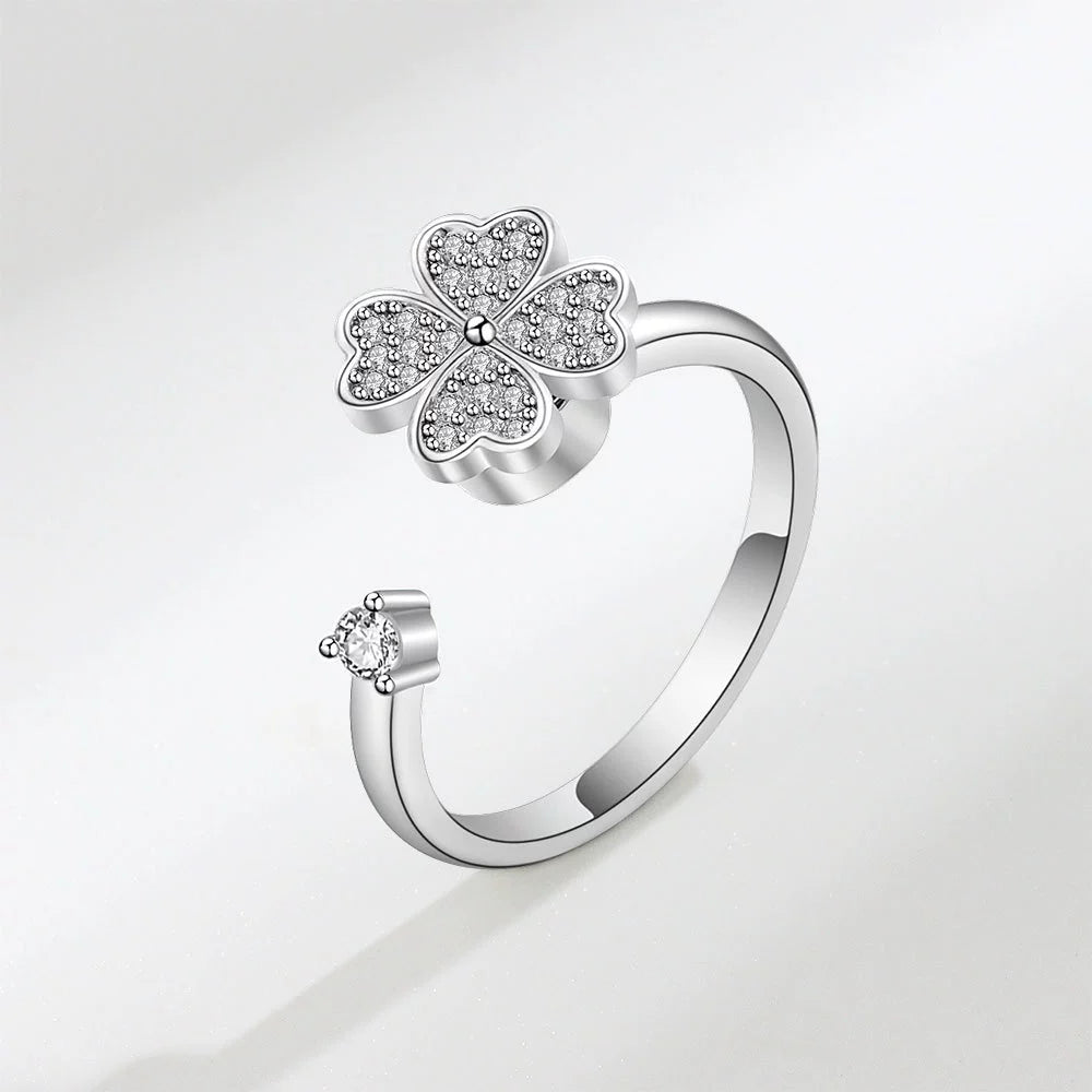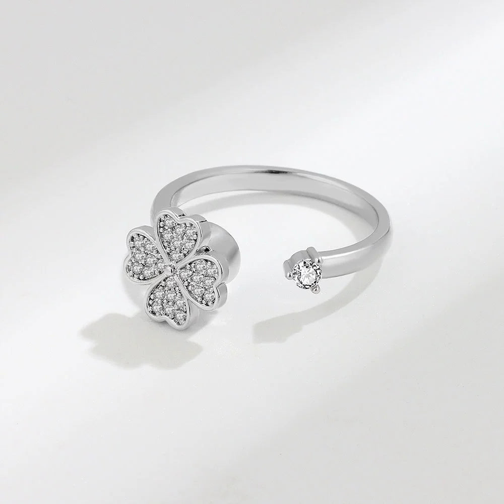 Jewelry Four Leaf Clover Rotating Opening Ring Copper Electroplated For Women