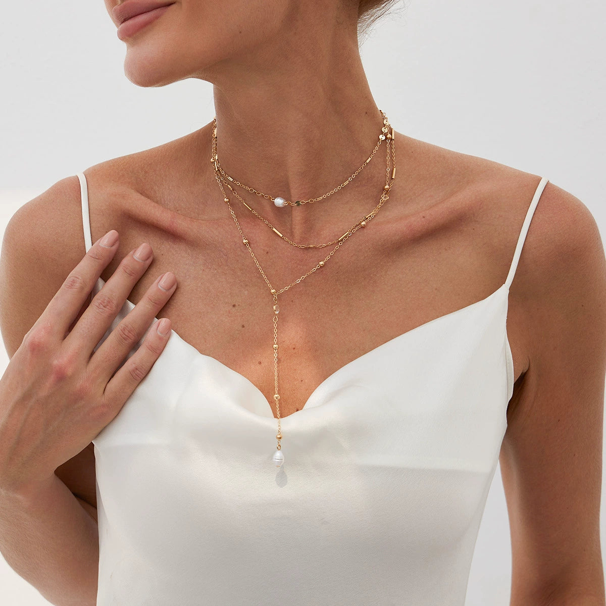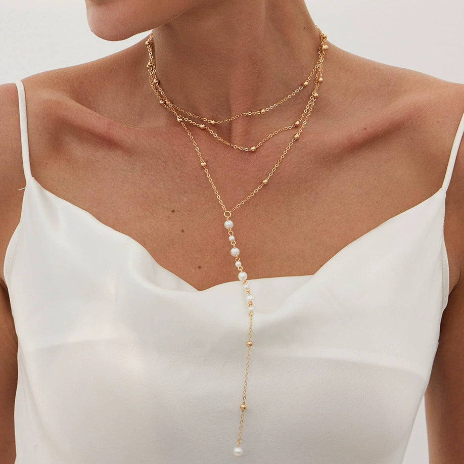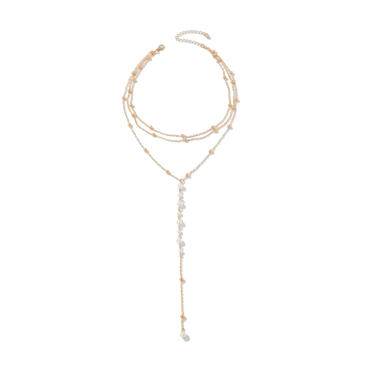 Jewelry Simple Geometric Imitation Pearl And Copperclad Iron Beaded Clavicle Chain Yshaped Necklace With Electroplating