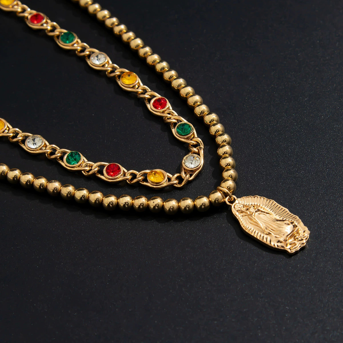 Men's Hiphop Allmatch Geometric Round Bead Necklace Handmade With Alloy Pendant